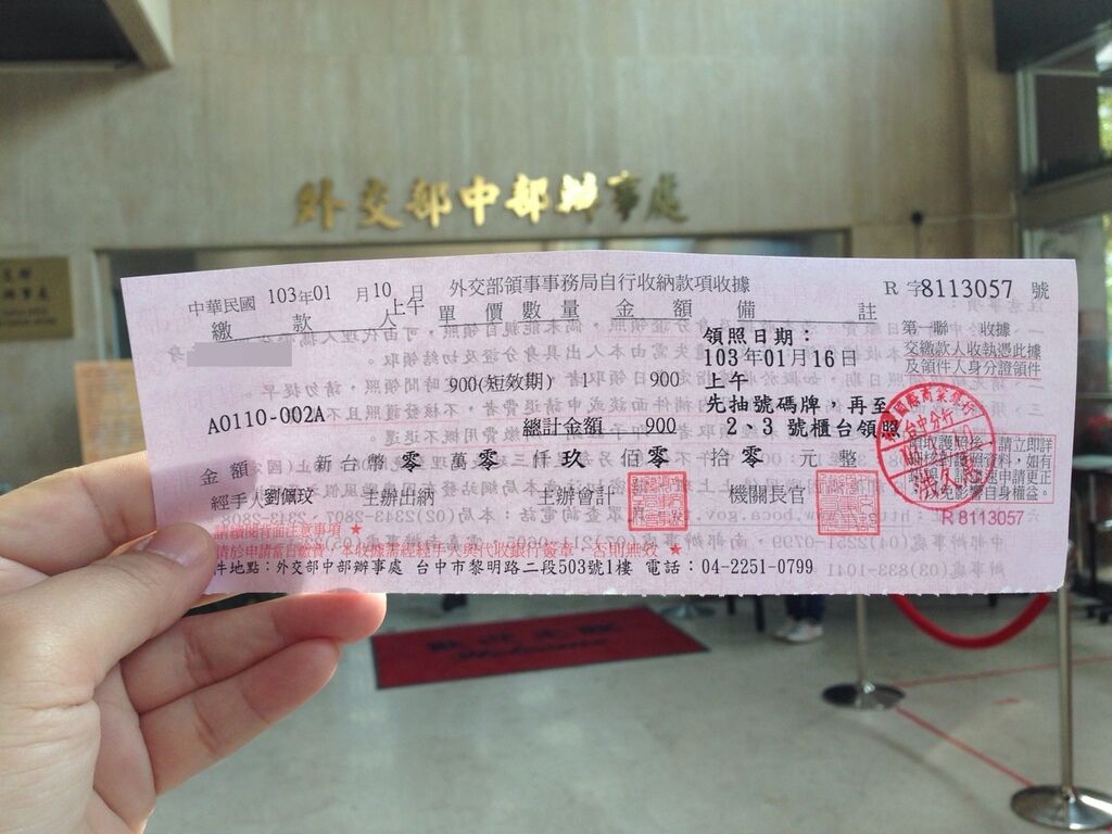 備妥的文件給櫃台,到旁邊櫃台繳費,憑收據就能領護照嚕