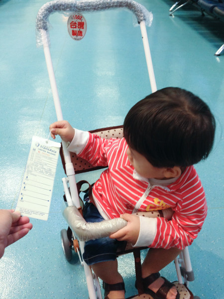 此行有帶簡易型嬰兒推車,空姐主動上前處理託運事宜
