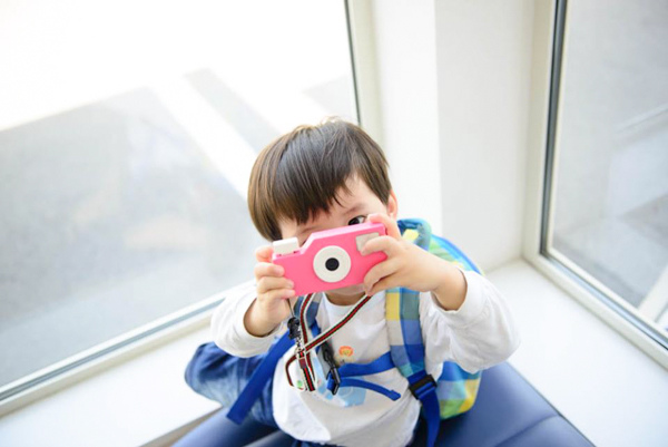 此時樂樂坐在旁邊,玩弄起他的新相機Qlix